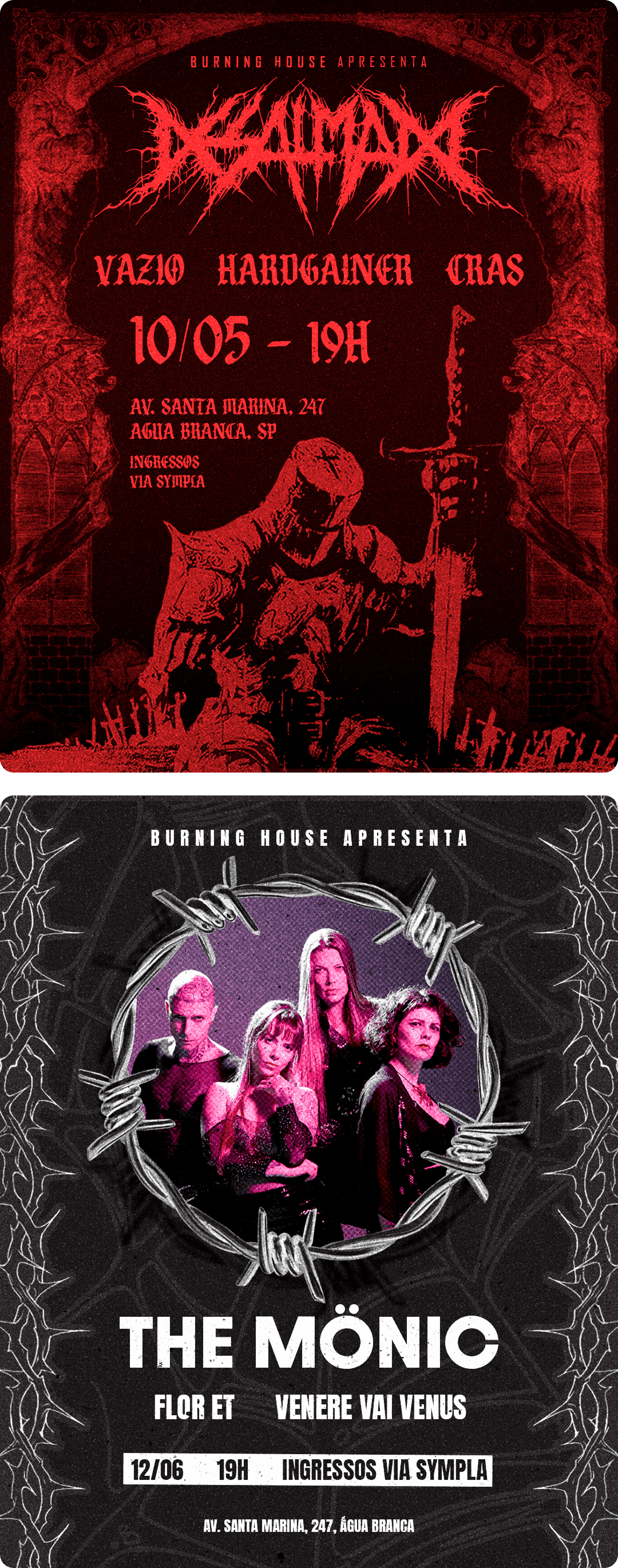 Development of digital arts that convey the aesthetics of the underground scene, reflecting styles such as metal, hardcore, punk, and other genres. Each with its own identity, aligned with the visual that connects with each audience. The aim was, in addition to promoting each show individually, to create a visual consistency for the venue, reinforcing its positioning in the scene and ensuring immediate recognition on social media.